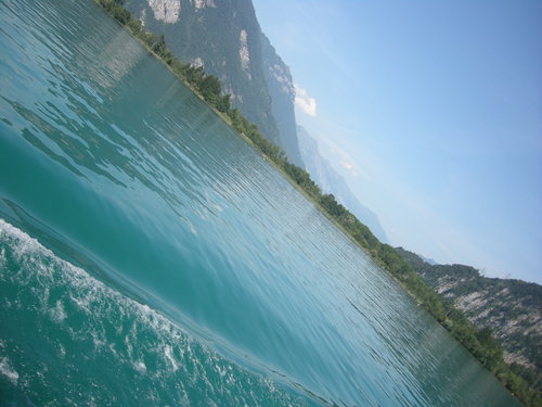 優雅的THUN湖湖水是綠色的,美極了,可是我們仨卻表情呆滯,面露疲色。這才知道早上的健行,已經在我們這城市鄉巴佬身上發生作用了,好加在當時沒有傻呼呼跟著人翻過山去,否則現在恐怕只能兩腿發軟地蹲在荒郊野地,再美的風景也不能給我們力氣呀!