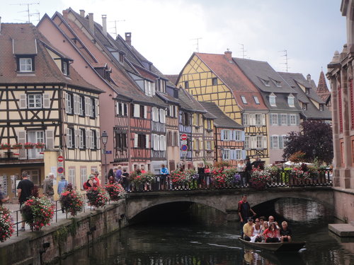 整個科瑪舊城區利用古建築和舊時代氛圍吸引遊客,據說宮崎駿「霍爾的移動城堡」故事場景就是根據科瑪繪製的。早上十點已經有不少遊客在此悠閒地穿街走巷,欣賞教堂、搭船遊小運河、參觀商會會堂,逛店、吃飯、看風景。
