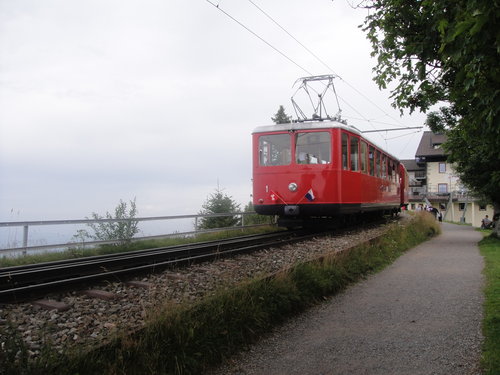 沿路指標清楚,不想走的人可以循線找到最近的火車站。我們特意走到瑞奇 ̇卡爾帕特,因為這裡有下山的纜車。在瑞士搭纜車是稀鬆平常的事,不過從瑞奇 ̇卡爾帕特到威基斯的纜車附加有娛樂效果,------試想從山上對著琉森湖俯衝而下的那種驚險刺激,......。
