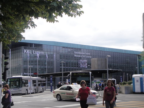 琉森車站的公共廁所很貴,收費2瑞士法郎,我們靈機一動,想到SWISS PASS可免費進出博物館,於是就近跑到車站右手邊的琉森現代美術館方便。去時還沒開館,我們仨還優雅鎮定地在館外小等了五分鐘。等著開門的館員衝著我們看,她心裡大概想:「哪裡來的藝術愛好者,一早就來排隊!」不過這種好康不是常有,我們還是在瑞士奉獻了不少「方便費」。