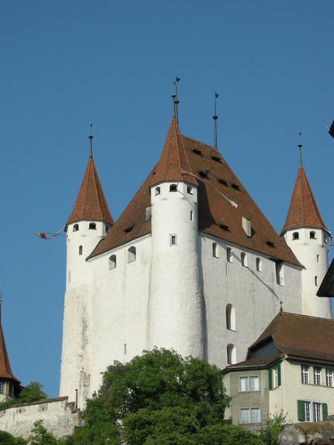 首要目標是圖恩的城堡。圖恩境內擁有四座知名的城堡,足見它在古時候的重要地位。但出了車站才知道,我們最想去的歐伯霍芬城堡 (Schloss Oberhofen)在鎮郊,不易到達,於是就近參觀以圖恩為名的中世紀城堡。(另外兩座是Schloss Schadau和Schloss Hunegg)