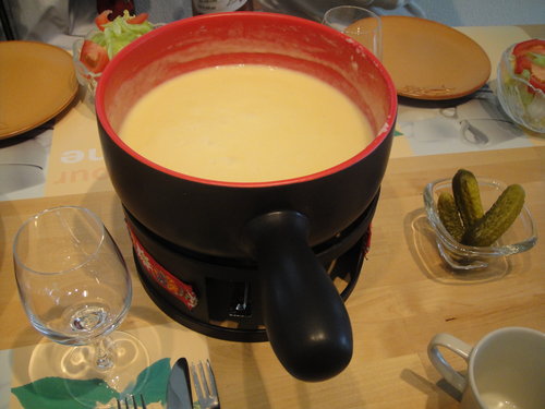 瑞士起士鍋。濃稠的口感帶著酒香,吃的時候用叉子叉上一小塊一小塊麵包沾著吃。看起來很單調,但吃起來很夠味,屋子裡的起士鍋味道即使到第二天也散不去。住宿陳姊民宿三日即贈送一份,另附開胃酸黃瓜,生菜沙拉,汽水和冰淇淋。